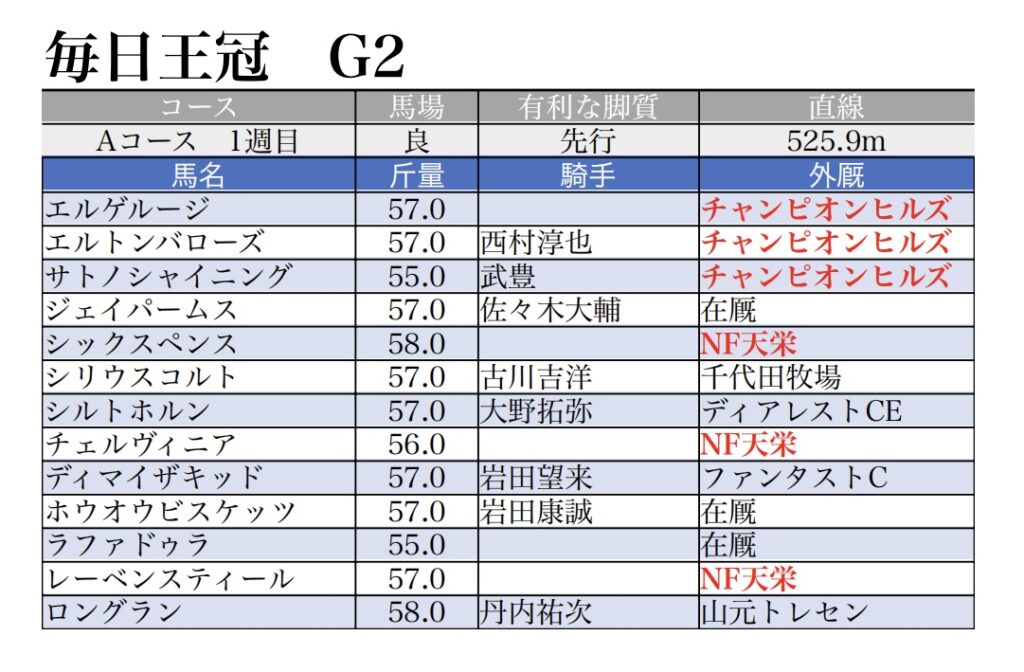 サトノシャイニング | 55.0 | 武豊 | チャンピオンヒルズ |
